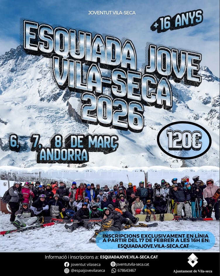 L'Àrea de Joventut de l'Ajuntament de Vila-seca organitza, un any més, l'Esquiada Jove Vila-seca 2026, els propers 6, 7 i 8 de març a Andorra.